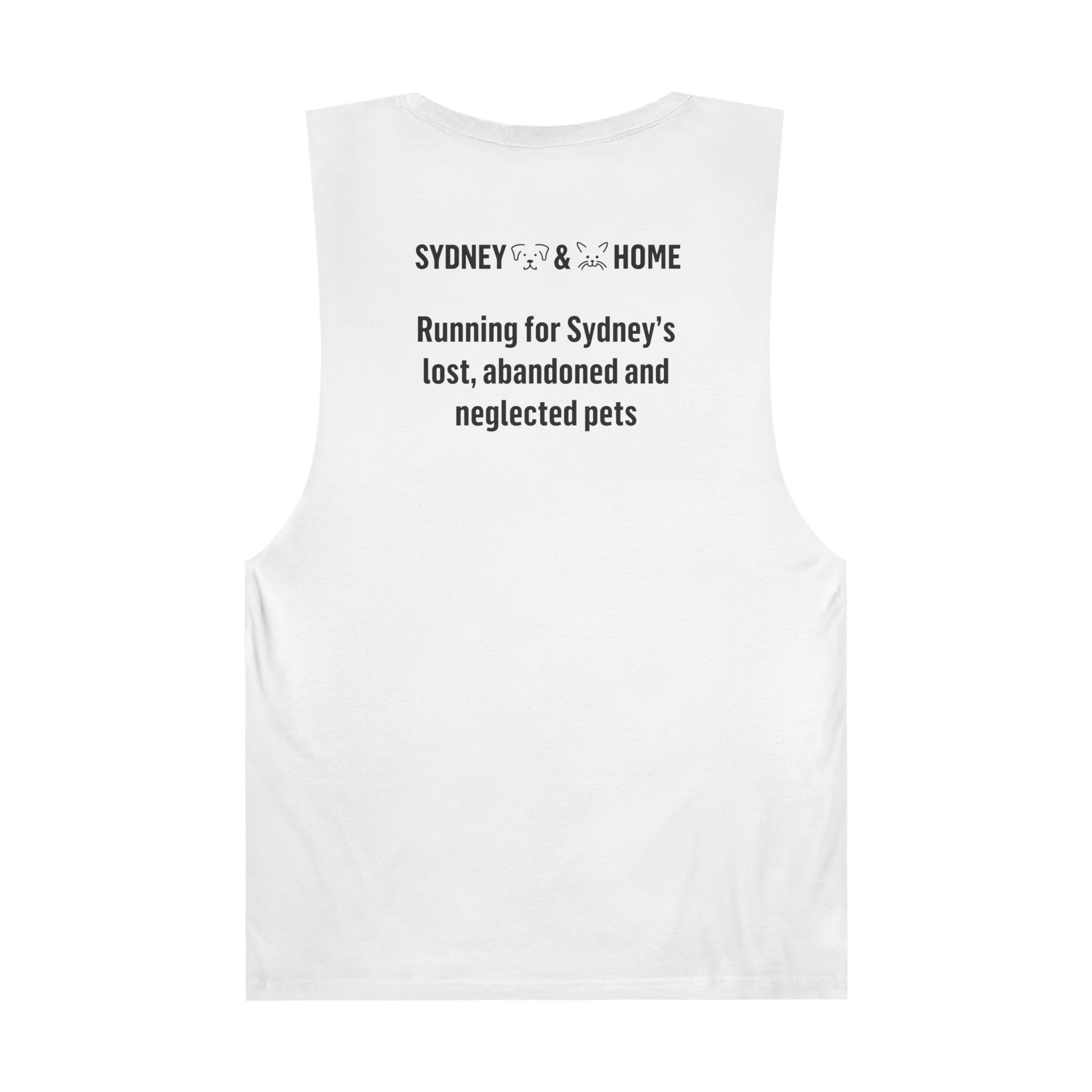✔️ Front: Sydney Dogs & Cats Home logo with plenty of space for your race bib